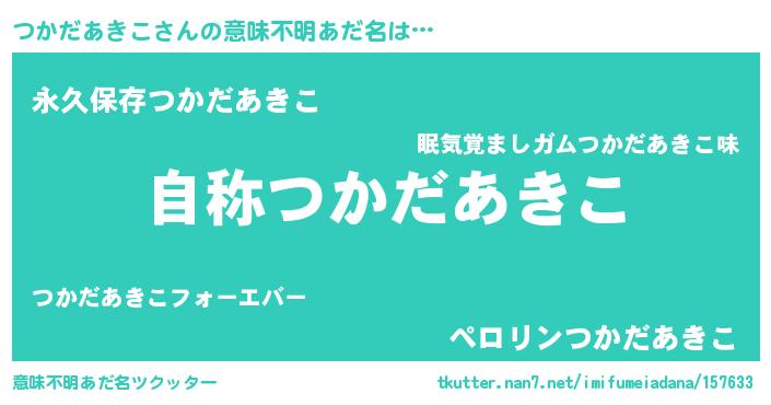 | ヘコむあだ名 | 『つかだあきこ(震え声)』『つかもー』 |
