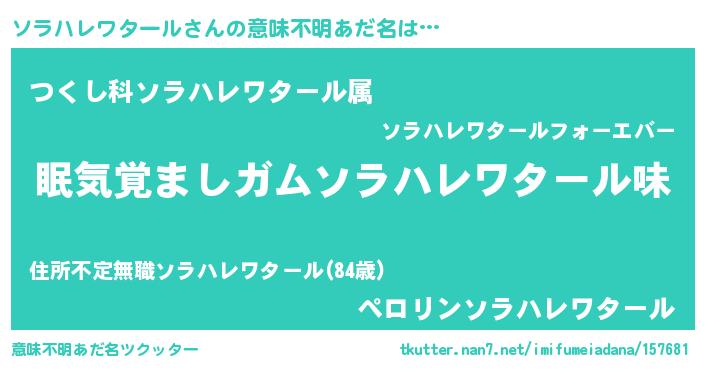 | ヒーロー風カッコイイあだ名 | 『正義の使者ソラハレワタール』 |