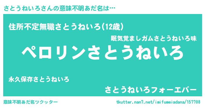 | 胡散臭い通販商品みたいなあだ名 | 『必ず成功する霊験あらたかなお札…その名も「さとうねいろ」』 |