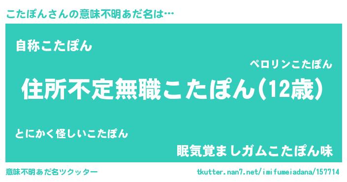 | 男性向けラノベタイトル風あだ名 | 『この素晴らしい世界にこたぽんを!』 |
