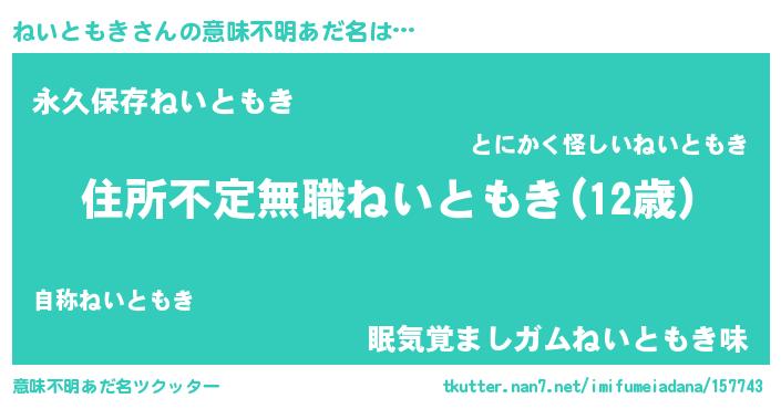 | ヘコむあだ名 | 『ねいともき(笑)』『ねいを』 |