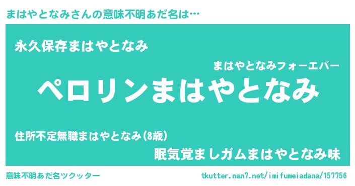 | ヘコむあだ名 | 『まはにー』『まはやとなみ(震え声)』 |