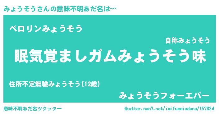 | 男性向けラノベタイトル風あだ名 | 『ノーゲーム・ノーミョウソウ』 |