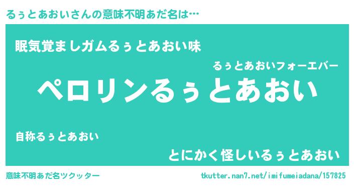 | 男性向けラノベタイトル風あだ名 | 『ルゥトアオイアートオンライン』 |