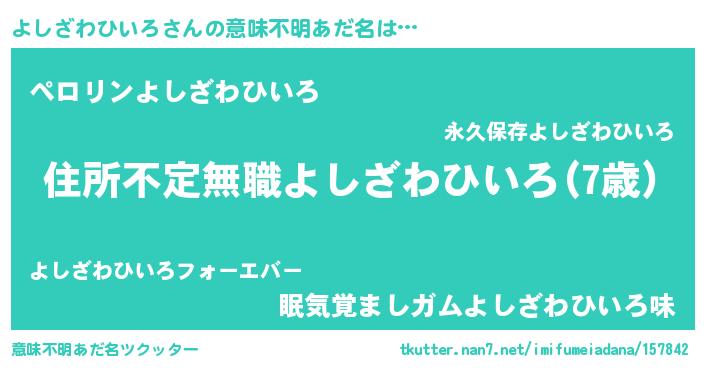 | ヘコむあだ名 | 『よしにー』『よしざわひいろ(遠い目)』 |