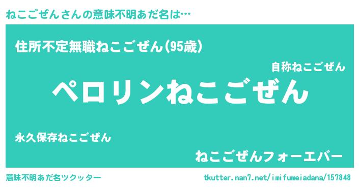 | 欧米人風あだ名 | 『マイケルねこごぜん』 |
