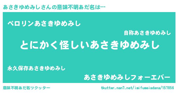 | ポケモン風あだ名 | 『ヒアサキユメミシ』『アサチュウ』 |
