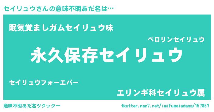 | ヘコむあだ名 | 『セイリュウ(笑)』『セイっふぃ~』 |