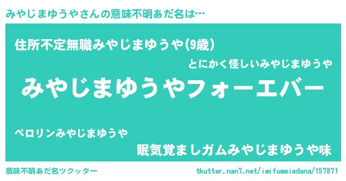 | 男性向けラノベタイトル風あだ名 | 『やはりみやじまゆうやの青春ラブコメはまちがっている 』 |