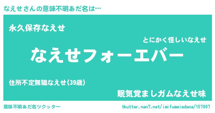 | ファンタジー風あだ名 | 『エターナルナエセー』『ナエディッシュ』 |