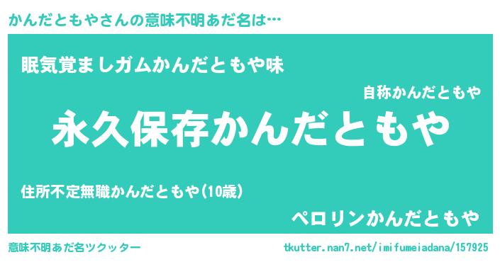 | ヘコむあだ名 | 『かんだともや(遠い目)』『かんもー』 |