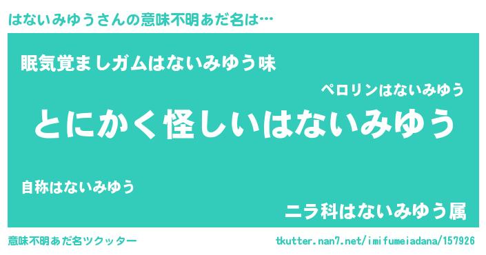 | ポケモン風あだ名 | 『ヒハナイミユウ』『ハックウザ』 |