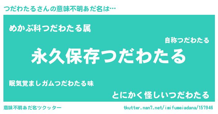 | 男性向けラノベタイトル風あだ名 | 『つだわたるという概念が存在しない退屈な世界 』 |