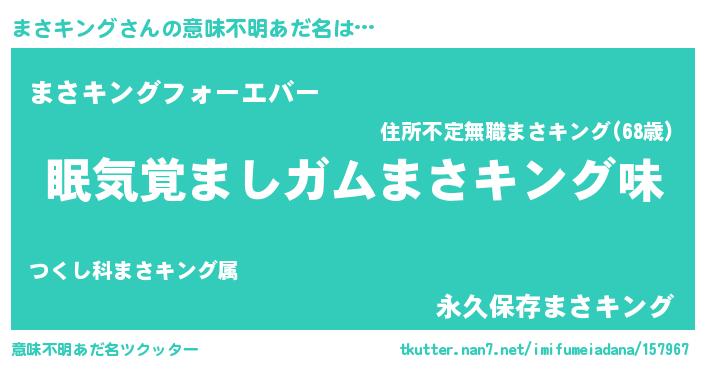 | 男性向けラノベタイトル風あだ名 | 『おまえをオタクにしてやるから、俺をまさキングにしてくれ! 』 |