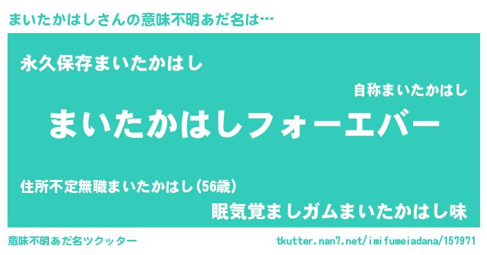 | 女子向けラノベタイトル風あだ名 | 『まいたかはしの雑貨屋さん』 |