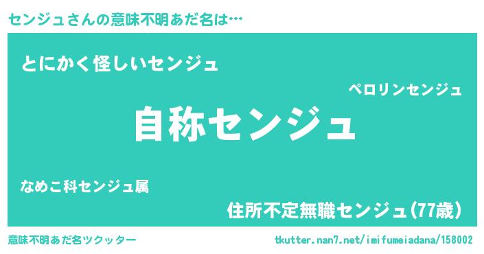 | ヒーロー風カッコイイあだ名 | 『超時空戦士センジュ』『幻影騎士セン』 |