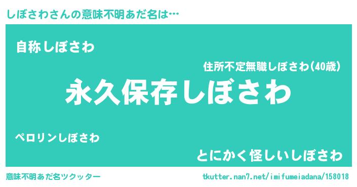 | 男性向けラノベタイトル風あだ名 | 『しぼさわという概念が存在しない退屈な世界 』 |