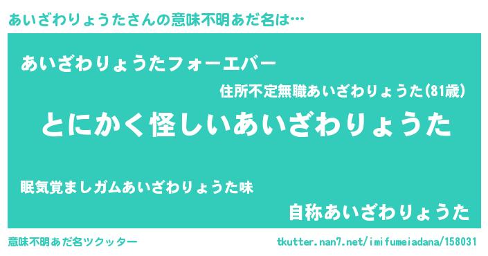 | 胡散臭い通販商品みたいなあだ名 | 『伝統あるサプリメント…その名も「あいざわりょうた」』 |