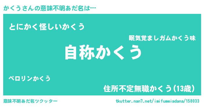 | 男性向けラノベタイトル風あだ名 | 『Re:かくうから始める異世界生活』 |