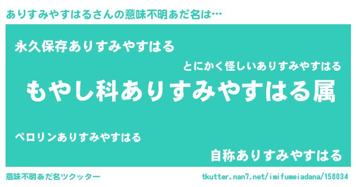 | 胡散臭い通販商品みたいなあだ名 | 『来世でも幸せになれる水素水…その名も「ありすみやすはる」』 |