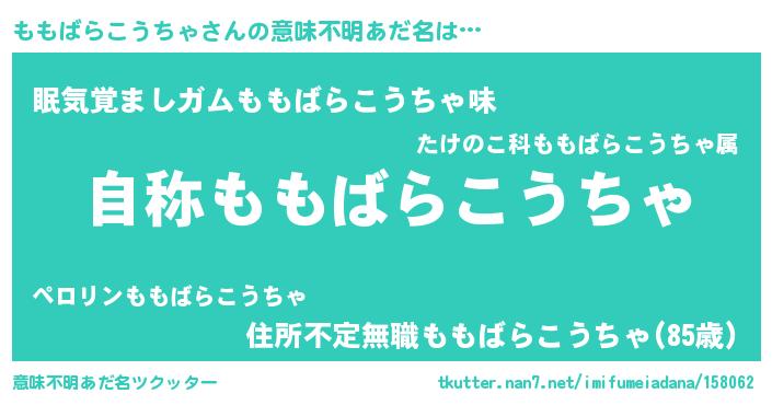 | 女子向けラノベタイトル風あだ名 | 『ももばらこうちゃなんてお断りですっ。』 |