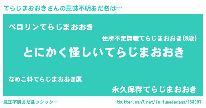 | 男性向けラノベタイトル風あだ名 | 『うちのてらじまおおきが世界を掌握している!』 |