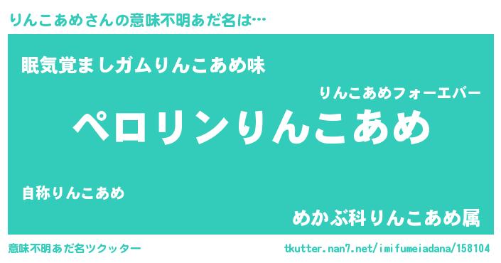 | 男性向けラノベタイトル風あだ名 | 『りんこあめに滅ぼされるだけの簡単なお仕事です』 |