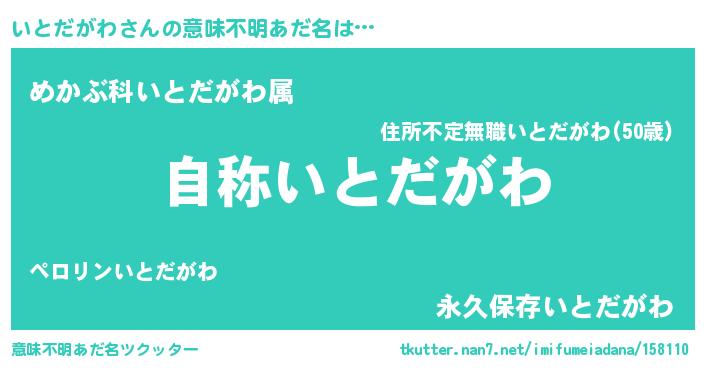 | 肩書あだ名 | 『いとだがわ総統』『いとだがわ中将』 |