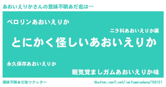 | 男性向けラノベタイトル風あだ名 | 『うちのあおいえりかが世界を掌握している!』 |