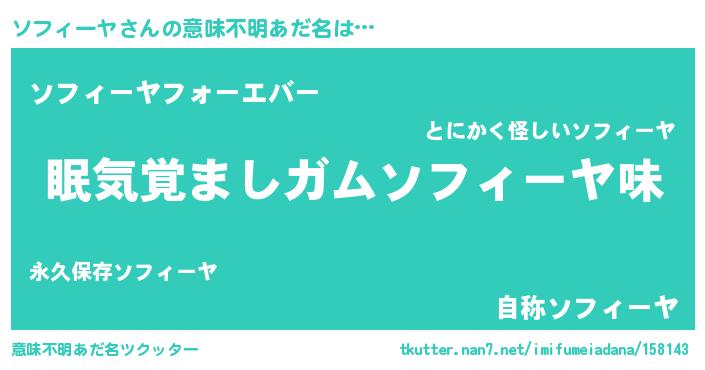 | 男性向けラノベタイトル風あだ名 | 『おまえをオタクにしてやるから、俺をソフィーヤにしてくれ! 』 |