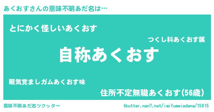 | 男性向けラノベタイトル風あだ名 | 『Re:あくおすから始める異世界生活』 |