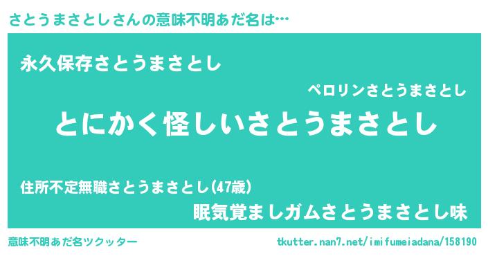 | ヘコむあだ名 | 『さと太郎』『さとうまさとし(笑)』 |