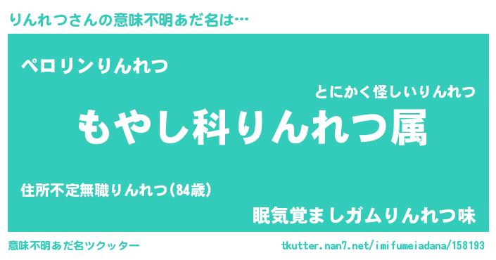 | 男性向けラノベタイトル風あだ名 | 『転生したらりんれつだった件』 |
