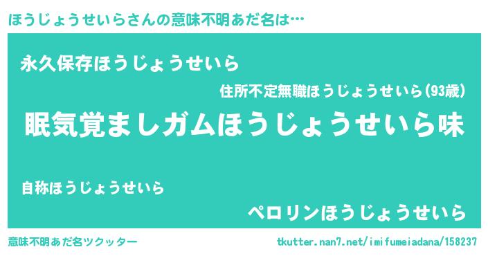 | 欧米人風あだ名 | 『ほうじょうせいら・ステッグマイヤー』 |