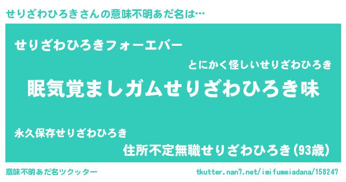 | 欧米人風あだ名 | 『せりざわひろき・ステッグマイヤー』 |