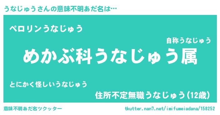 | 男性向けラノベタイトル風あだ名 | 『ウナジュウスレイヤー』 |