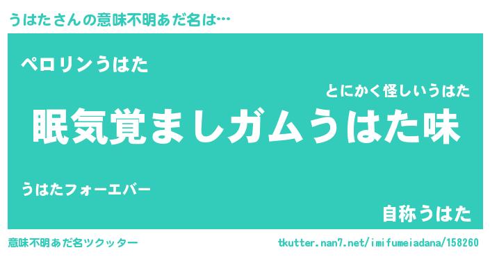 | ヒーロー風カッコイイあだ名 | 『正義の使者うはた』『スーパーウハタ』 |