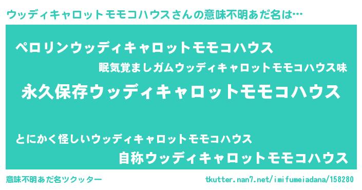 | ヘコむあだ名 | 『ウッディキャロットモモコハウス(小並感)』 |