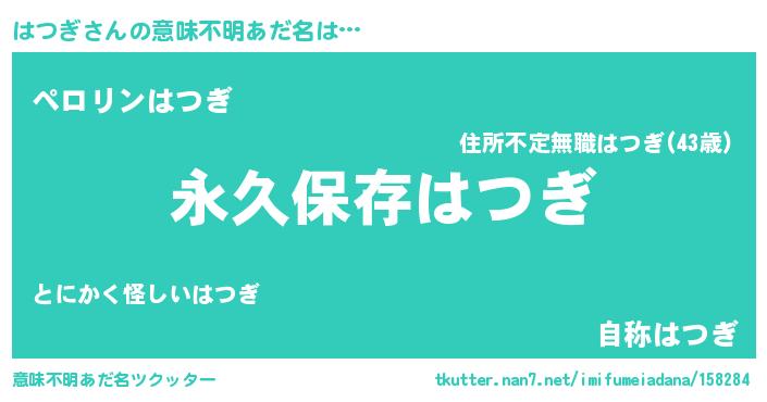| 男性向けラノベタイトル風あだ名 | 『はつぎという概念が存在しない退屈な世界 』 |
