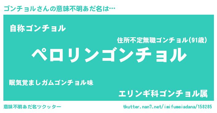 | 男性向けラノベタイトル風あだ名 | 『ゴンチョルに滅ぼされるだけの簡単なお仕事です』 |