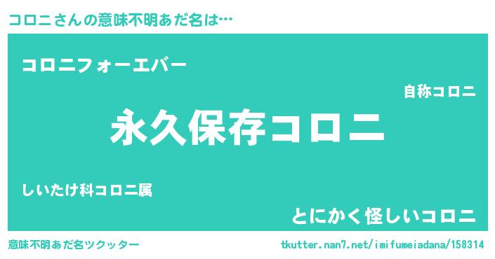 | ヒーロー風カッコイイあだ名 | 『ネオコロニ』『ウルトラコロニマン』 |