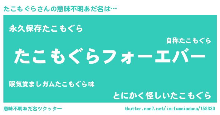 | 欧米人風あだ名 | 『たこもぐらクリステル』 |