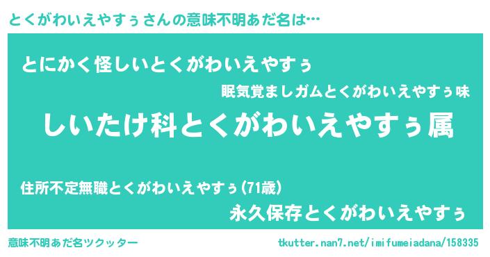 | ポケモン風あだ名 | 『トクキング』『ヒトクガワイエヤスゥ』 |