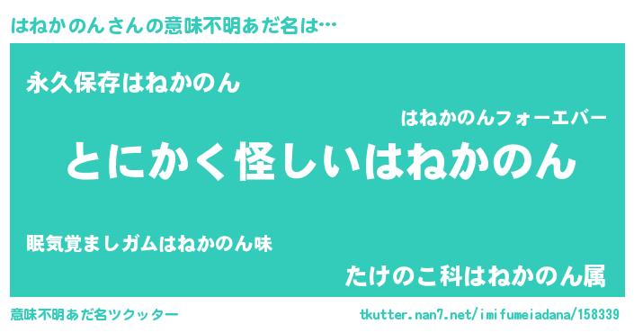 | ポケモン風あだ名 | 『ヒハネカノン』『メロハッネ』 |