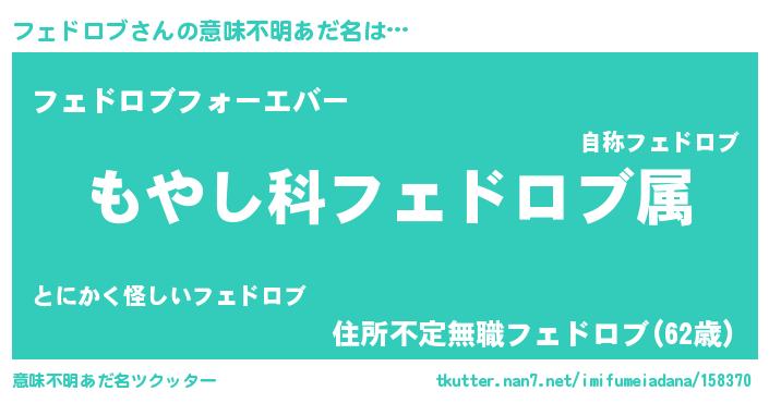 | ヘコむあだ名 | 『なまこ酢』『フェぷりん』 |