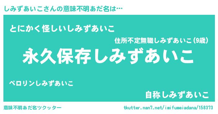 | 男性向けラノベタイトル風あだ名 | 『しみずあいこという概念が存在しない退屈な世界 』 |