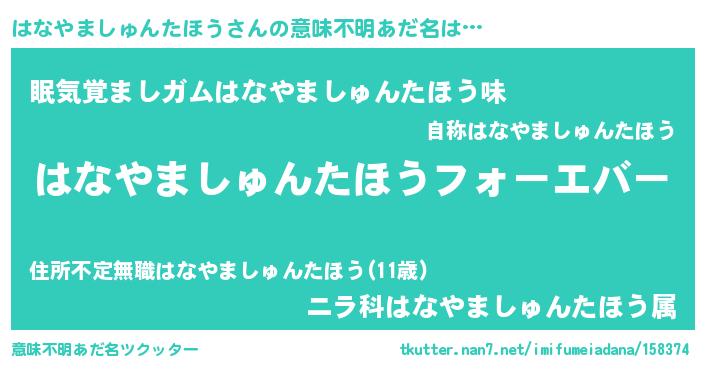 | ファンタジー風あだ名 | 『エターナルハナヤマシュンタホウー』 |