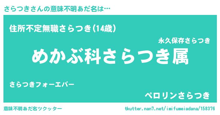| 男性向けラノベタイトル風あだ名 | 『サラツキスレイヤー』『さらつきの憂鬱』 |