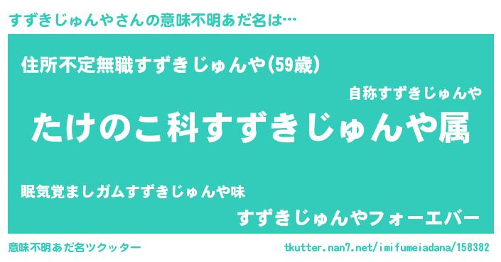 | 男性向けラノベタイトル風あだ名 | 『転生したらすずきじゅんやだった件』 |
