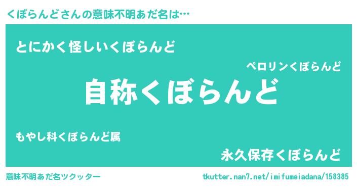 | 男性向けラノベタイトル風あだ名 | 『Re:くぼらんどから始める異世界生活』 |